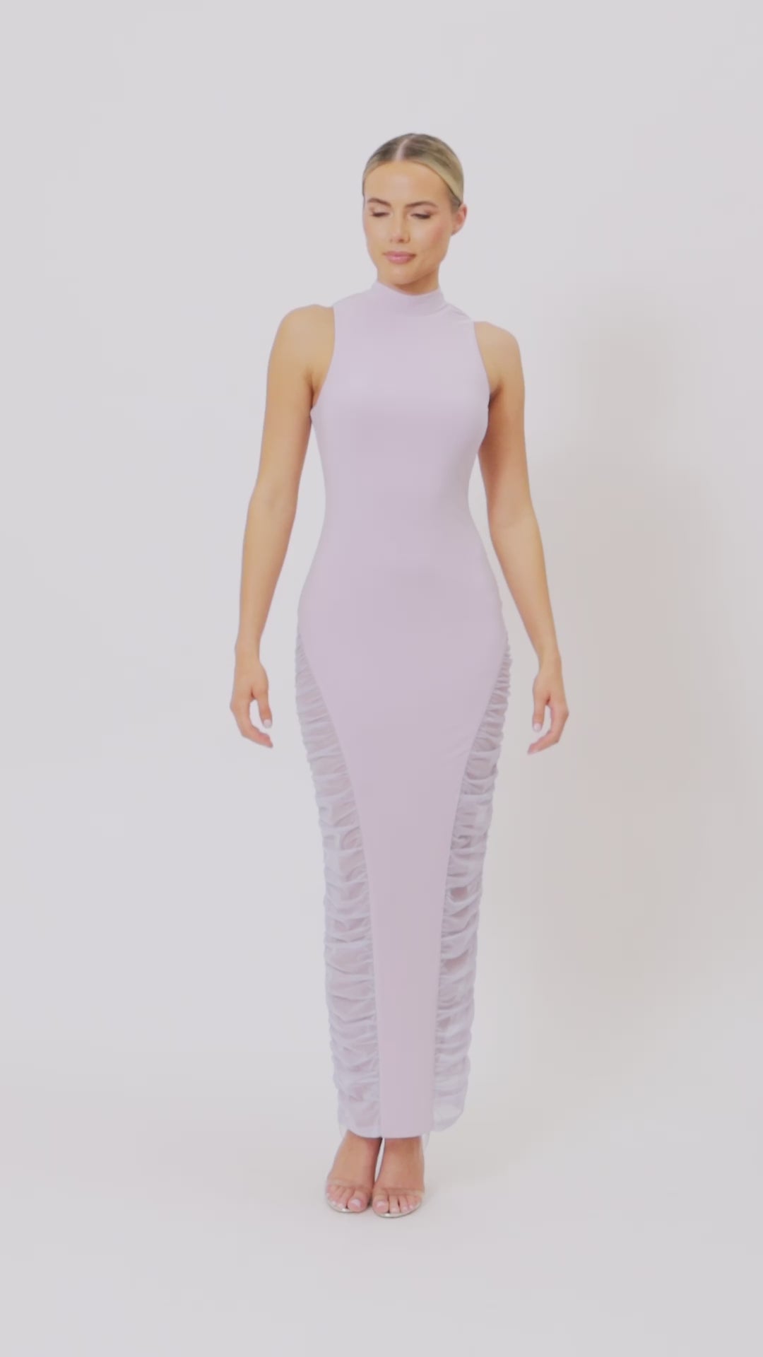 Introducing the Alexius Midi Dress, a refined silhouette designed to flatter the form. Featuring sheer ruching through the sides from hip to hem, this style creates soft texture and a sculpted effect. Finished with a subtle turtle neckline, the Alexius balances modern elegance with understated allure